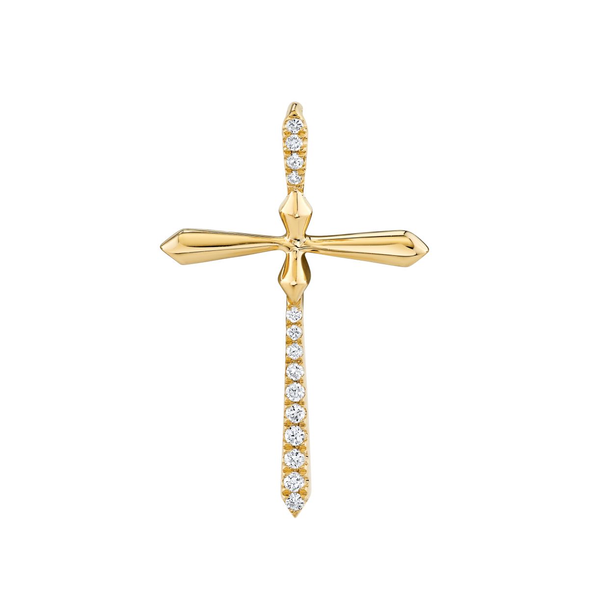 A refined cross pendant featuring a mix of polished and diamond-accented bars for subtle contrast and dimension.